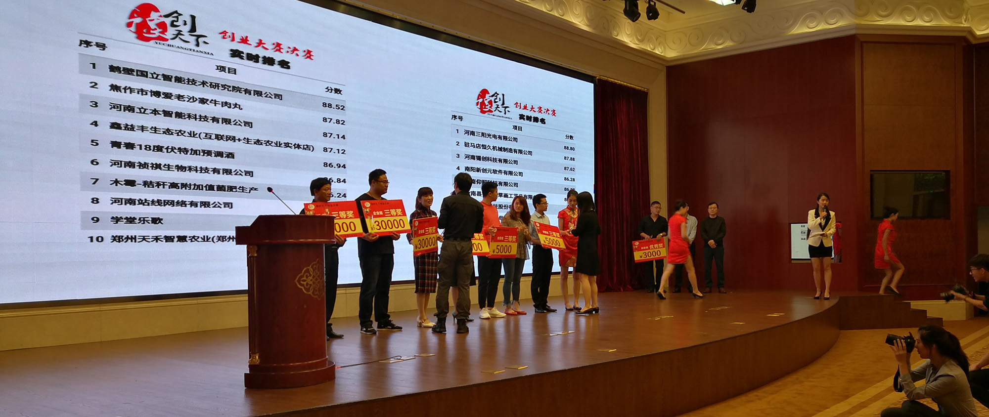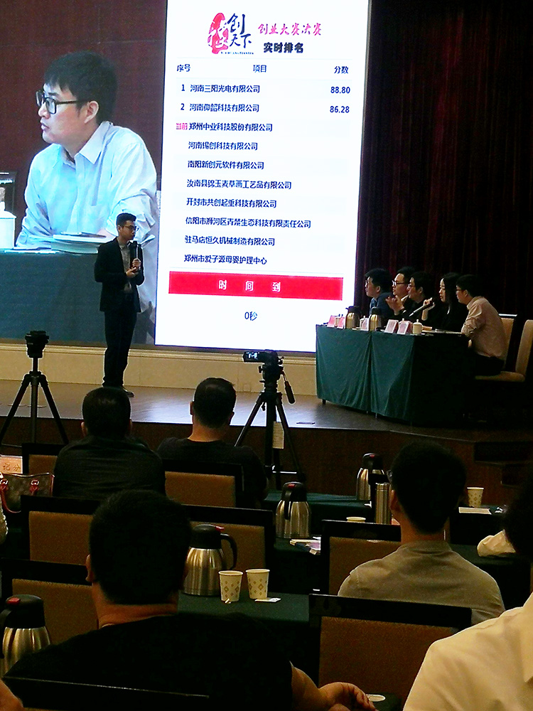 河南省《豫创天下》创业大赛的实时评分系统,用的是【纬地云】的“评分系统”系统,实现了:当场打分,当场出结果,动态排名,透明显示,“大众评委”支持支持率动态变化,点赞人数实时攀升,投资人心动意向表示,投资额当场输入,实时显示,融资意向选择当场锁定,以上内容全部在整合同一界面展示,效率高,公开、公正、透明,不给“人为插手”任何机会,彻底消除疑问和顾虑,做到比赛无争议;大众参与度高,整场跌宕起伏,扣人心弦,环节紧凑,有序可控,确保比赛在网络科技的氛围中完美收官。